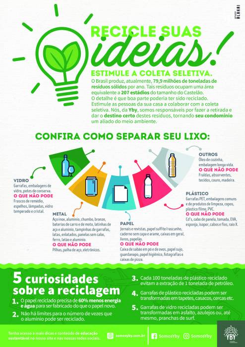 Muito prazer! Nós somos a Yby Soluções Sustentáveis. Uma empresa inovadora que pode trazer para seu condomínio serviços de gerenciamento de resíduos e educação ambiental. Temos a melhor forma de coletar seletivamente o lixo da sua empresa, ou condomínio.